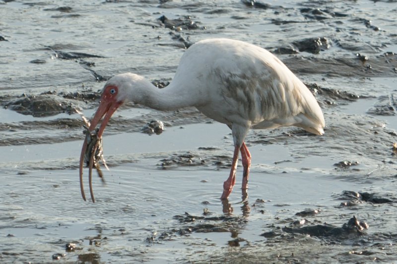 | 046 - 3 Sep 2014 - Huntington Beach State Park, SC, White Ibis with Crab - DSC04221 | ||